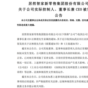 关于汪林朋被留置的具体原因,公告中并未详细披露。居然智家表示,截至公告日,公司尚未知悉上述事项的进展及结论,公司将持续关注上述事项的后续进展。