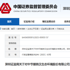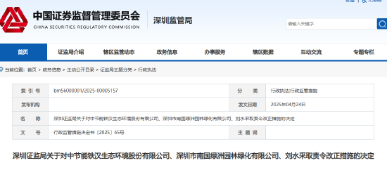 4月24日,深圳证监局披露了一则《关于对中节能铁汉生态环境股份有限公司、深圳市南国绿洲园林绿化有限公司、刘水采取责令改正措施的决定》的公告。
