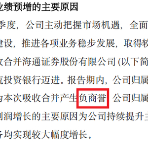 但这80——90亿元的负商誉十分带有迷惑性。比如,部分投资者认为国泰海通在完成吸收合并后,今年一季度超百亿元的净利润已经成为行业“一哥”,毕竟中信证券同期的归母净利润仅65亿元左右。