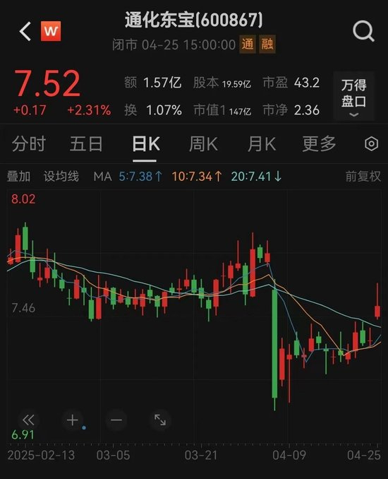 Wind数据显示,截至2024年10月24日,通化东宝的股东数还有9.5万户。截至4月25日收盘,通化东宝股价报7.52元,最新市值达147亿元。