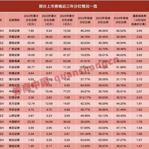 不过,券商股的现金分红比例个股之间差异较大,不像国有大行和股份制银行那么稳定。有的上市券商分红比例甚至超过100%,有的上市券商则干脆不分红。
