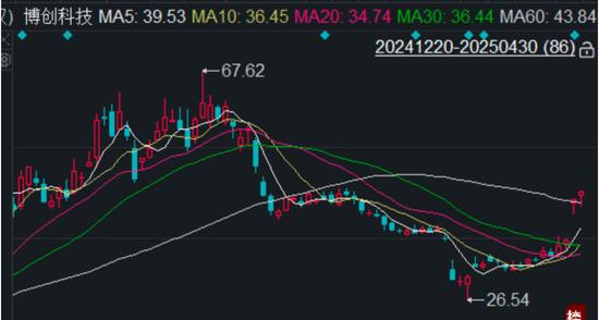 截至4月30日,博创科技股价报收45.75元/股,而在此前,公司股价曾于2月18日涨至67.62元/股,暂居2025年年内最高点。
