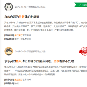 在黑猫投诉平台上,截至4月27日,围绕鱼跃血压计、血糖仪、制氧机等产品的质量问题投诉已高达488条。