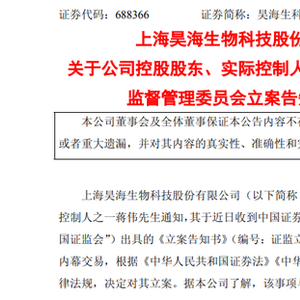 突发!688366,实控人被证监会立案!