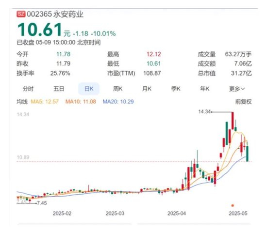 又一家A股上市药企实控人被立案调查,本周永安药业两度跌停,5月9日报收10.61元/股。