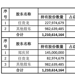 2021年10月,公司原第一大股东安吉巴玛与任贵龙签署了《股份转让协议》,安吉巴玛拟将其持有的公司198,625,280股股份(占公司总股份的20.30%)协议转让给任贵龙。本次股份转让的价格为5.00元/股,股份转让价款为993,126,400.00元。同时,公司拟非公开发行不超过292,000,000股股票,不超过发行前公司总股本的30%(最终发行数量以中国证监会核准的数量为准),发行价格为4.25元/股,不低于审议本次向特定对象发行的董事会决议公告日前20个交易日股票均价的80%,任贵龙拟以现金形式全额认购。
