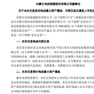 电投能源(002128)5月18日晚公告,公司拟通过发行股份及支付现金的方式购买国家电投集团内蒙古能源有限公司(简称:内蒙古公司)持有的国家电投集团内蒙古白音华煤电有限公司(简称:白音华煤电)100%股权。同时,上市公司拟向不超过35名符合条件的特定投资者发行股份募集配套资金。截至预案签署日,本次交易标的资产的审计、评估工作尚未完成,本次交易的具体交易价格尚未确定。本次交易预计构成重大资产重组和关联交易。