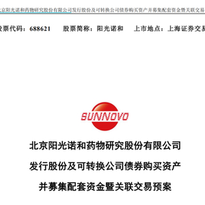 同时,阳光诺和还计划向不超过35名特定投资者发行股份募集配套资金,募集资金拟用于支付朗研生命项目建设、此次交易的中介机构费用等,以及补充流动资金等。