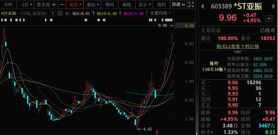 *ST亚振(603389)股价连续10天涨停。