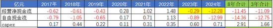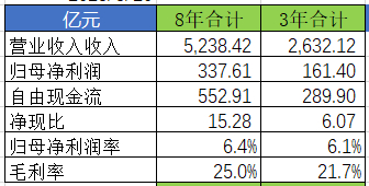 利润大把,现金流负数,而且过去8年过去、3年累计自由现金流都是负数。