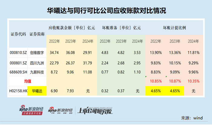 华曦达财务数据真实性有待考证,与同行公司相比,公司应收账款占总资产的比例偏高,但坏账计提比例最低。