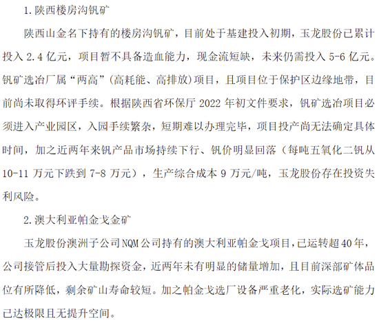 陕西楼房沟钒矿、澳大利亚帕金戈金矿、辽宁硅石矿等3个矿山构成的公司经营主体“整体运营停滞,现金流紧缺,基本不具备自我造血能力,存在无法持续经营的风险。”