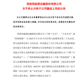 5月27日晚间,招商轮船、安通控股均发布公告称,终止重组上市事项。