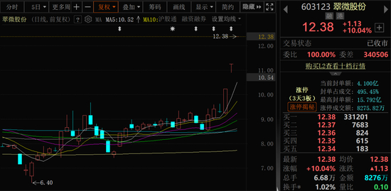 翠微股份连续三天涨停,近三个交易日股价累计涨幅达30.01%,最新报12.38元/股。