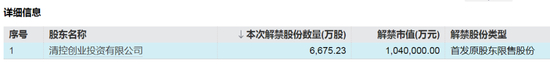 解禁市值第二大的华海清科解禁股东为清控创业投资有限公司,为华海清科第一大股东。