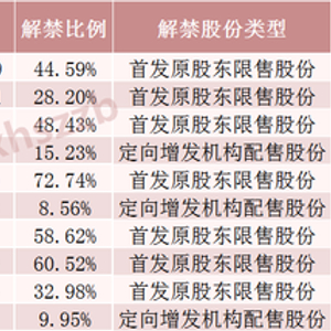下周解禁比例前十股票