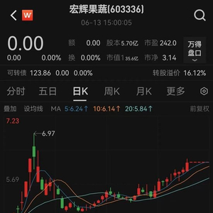 截至停牌前的6月6日收盘,宏辉果蔬股价为6.24元/股,最新市值为35.6亿元。