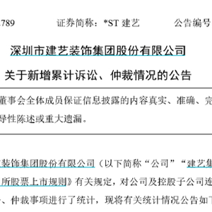 6月17日晚间,*ST建艺(建艺集团)披露新增累计诉讼、仲裁情况的公告。