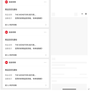 不过记者发现,点进微信小程序链接后,依然无法进入正常的购买界面。类似的情况也发生在了不少消费者身上,部分消费者还表示,感觉此次补货的数量和次数比往期的都多,导致抢购的人数大幅增加。有消息显示,泡泡玛特此次补货或将从6月18日起连续进行三天。