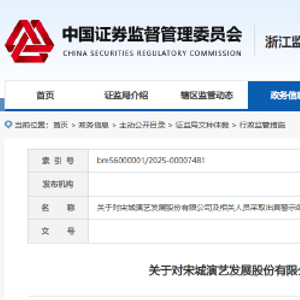 6月19日,浙江证监局披露了一则《关于对宋城演艺发展股份有限公司及相关人员采取出具警示函措施的决定》的公告。