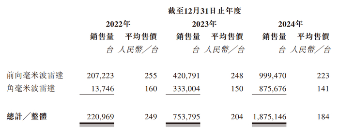 2022-2024 年,承泰科技来自比亚迪的收入占比从 81.9% 攀升至 93.6%。这种深度绑定虽带来短期订单稳定性,但也埋下长期隐患。为维持订单,承泰科技的前向雷达平均售价从2022年255元/台降至2024年223元/台,三年降幅 12.5%,而同期原材料成本上涨8.7%,毛利率提升空间被压缩。