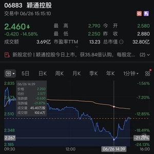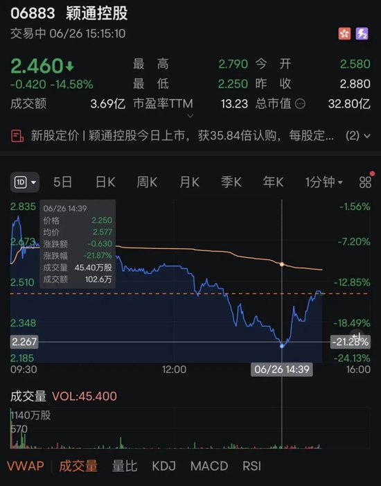 中国“香水第一股”颖通控股登陆港股首日即破发,盘中一度跌超20%,收盘报2.47港元/股,收跌14.58%。