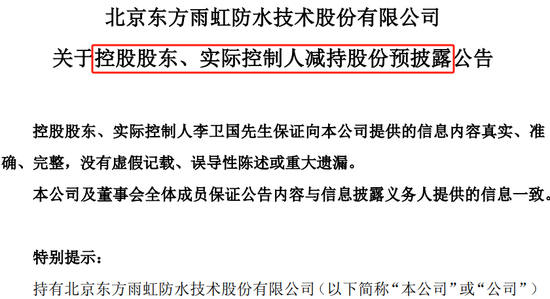 7月2日深夜,曾经的防水材料龙头、有“防水茅”之称的东方雨虹,其实控人又抛出减持计划。