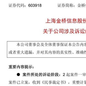 截至去年年末,金桥信息公司已对涉诉(恒大新能源汽车)金额全额计提各项资产减值准备共计3832.87万元。公司预计本次清偿金额执行后,将冲回上述部分资产减值准备,对公司相应年度利润的影响金额约为2119.87万元。