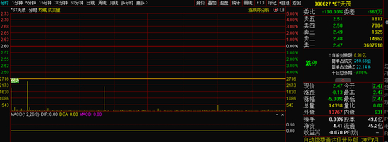 复牌后连续两日,该股毫不留情的被巨量抛单压制在跌停位置上,动弹不得(下图)。这充分说明了,市场对于该股未来的担心和谨慎态度。