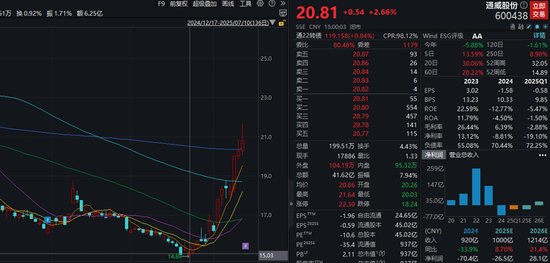 近日,A股市场上证指数站上3500点,市场迎来一波反内卷行情。光伏龙头通威股份股价也是接连反弹,从低点14.89元/股反弹至7月10日收盘的20.81元/股。