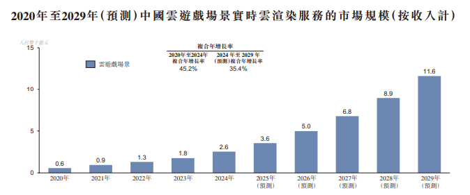 行业层面,尽管中国云游戏领域实时云渲染服务市场规模增长迅猛——2020年至2024年复合年增长率达45.2%,预计2024年至2029年仍将以35.4%的增速扩张;但实际行业整体规模相当有限,2024年行业规模仅26亿元,2029年行业规模也不过116亿元——而2025年一季度腾讯在游戏行业的收入就达到了595亿元。