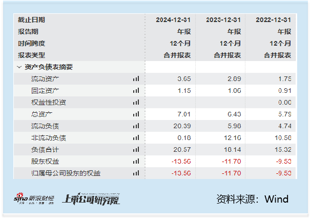 更为严峻的是其负债结构。2024年末总资产约70.08亿元,总负债却高达20.57亿元,资产负债率超过293%,远高于行业平均水平,高杠杆运营模式使其面临巨大偿债压力。公司短期偿债能力更为堪忧,2024年末,公司流动负债总额飙升至20.4亿元,较2023年的6.0亿元激增241%,净流动负债达16.7亿元,流动比率仅为0.2倍,远低于健康企业通常维持的1倍以上水平。