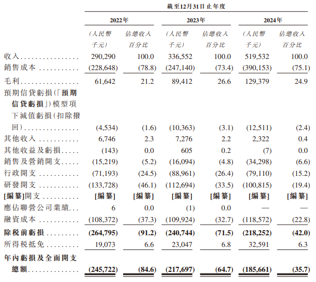 海马云的营收曲线近年确实划出了漂亮的上扬线,2022年至2024年,公司营收分别为2.9亿元、3.4亿元及5.2亿元,2022年至2024年的复合年增长率为33.8%,其中2024年同比增幅更是高达54.4%。但剥开增长外衣,亏损的“黑洞”始终未散 ——2022年至2024年,公司净亏损分别为2.46亿元、2.18亿元及1.86亿元,三年累计净亏损约6.50亿元。