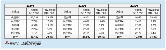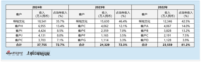 公司在客户及供应商层面出现了集中度双高的局面。2022-2024年,公司来自五大客户的收入占比分别为81.2%、72.3%及72.7%,虽呈下降趋势,但仍处于高位。其中,最大客户咪咕文化的收入贡献尤为突出,分别占各年度总收入的42.5%、46.4%及35.7%,且咪咕文化同时持有公司13.62%的股份,形成“客户+股东”的双重关联关系。这种深度绑定虽在短期内为公司提供了稳定的收入来源,但也潜藏巨大风险。若咪咕文化因战略调整、业务收缩或合作模式变更减少对海马云的采购,将直接导致公司收入大幅波动。此外,客户与股东身份的重叠可能引发利益输送争议,增加公司治理复杂度。