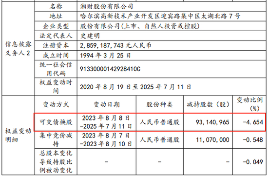 从大智慧最新的公告来看,2023年8月8日至2025年7月11日期间,自上述两期债券进入换股期累计换股9314.1万股,致湘财股份对大智慧持股数量减少4.654%。