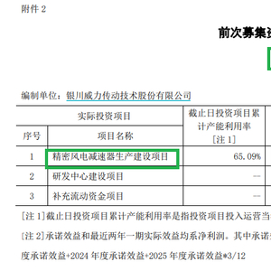 威力传动表示,本次定增的目的有二:打造西部风电增速器研发生产高地,强势切入增速器领域;加码风电齿轮领域投入,激发主营业务增长新动能。