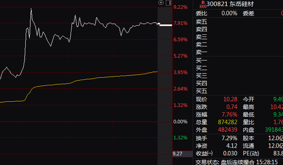 A股市场有机硅概念走高,飞鹿股份涨超10%,东岳硅材涨超7%,合盛硅业、远翔新材、硅宝科技、恒星科技、鲁西化工、三友化工等跟涨。