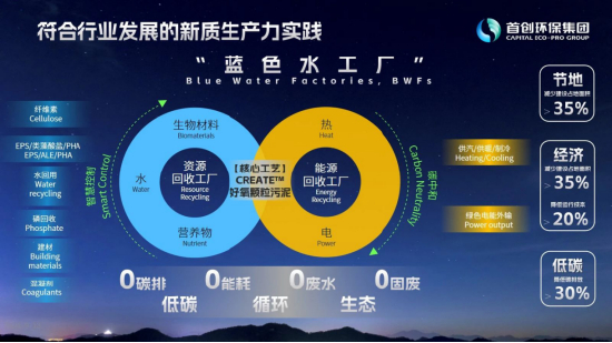 以“蓝色水工厂”实践为例,2017年,公司正式提出“蓝色水工厂”的概念,并在公司内部建设产品转化小组。历时8年,如今,“蓝色水工厂”技术下的核心工艺——Capital CREATE好氧颗粒污泥技术,是公司拥有完全自主知识产权的“下一代污水处理技术”,该技术具备优秀的处理效率,与传统技术相比,Capital CREATE好氧颗粒污泥技术可以节约35%以上的土地,更加适合城市的污水处理设施原位扩容改造;同时,由于Capital CREATE好氧颗粒污泥技术的沉淀速度更快,污水厂运营成本可以降低20%以上,同时降低30%左右的碳排放。“蓝色水工厂”的技术体系可以实现4个净零:零废水、零固废、零能耗、零排放,实现了真正的碳中和,基本符合公司对新质生产力发展的描绘图景。