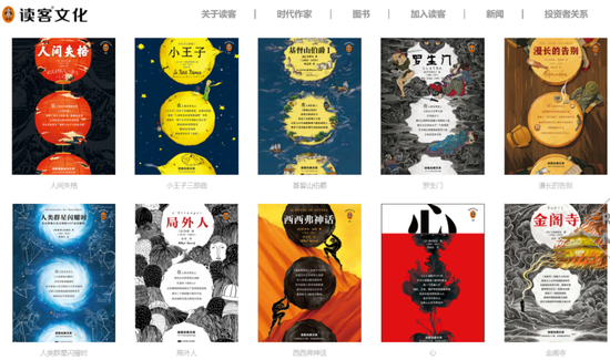 通过统一的封面设计、夸张的腰封文案等方式,极大地降低图书的营销识别成本。就好比下面这张来自读客文化的官网截图,是其列举的读客经典文库,不难看出其中的相似之处。一个模板就能打造出这么多的爆款,怎么说呢,还是有厉害的成分在里面的。