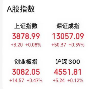 今日早盘,A股三大股指下探回升,AI硬件板块显著回暖,带动创业板指领涨。截至午间休市,上证指数报3878.99点,涨0.08%;深证成指、创业板指分别上涨0.39%和0.47%。