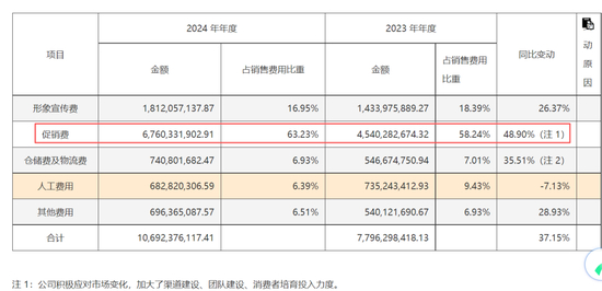 2024年,五粮液销售费用蹿升至106.92亿元,同比增长37.15%,成为白酒上市公司中销售费用最高的企业,同期茅台为56.39亿元。