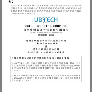完成港股上市后,人形机器人龙头企业优必选拟收购一家A股上市公司。