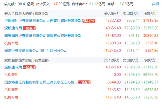 金风科技盘后龙虎榜显示,有3家机构上榜,且买卖分歧严重,其中1家机构买入1.57亿元同时卖出1.34亿元,一家机构卖出近6亿元,一家机构买入9143万元并卖出1.54亿元;深股通买入4.07亿元并卖出7.28亿元。