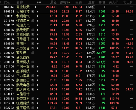商业航天板块掀起涨停潮。