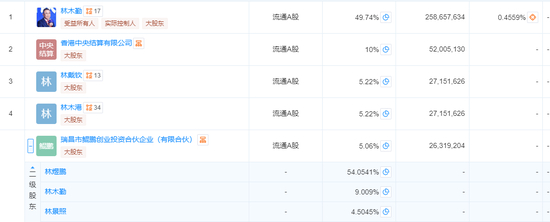算下来,创始人家族合计持股超过了65%。其中,林木勤父子共持有52.93%股份。