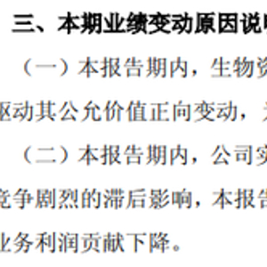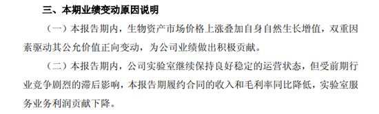 具体来看,生物资产公允价值变动贡献的净利润约4.52亿元到4.99亿元,实验室服务及其他业务净亏损约1.30亿元到2.06亿元。