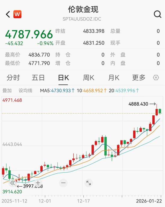 截至发稿,伦敦金报4787.966美元/盎司,日跌幅近1%。
