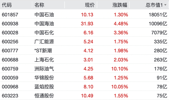 个股方面,“三桶油”均有明显涨幅,洲际油气、蓝焰控股涨停,泰山石油、首华燃气、博汇股份等纷纷上涨。