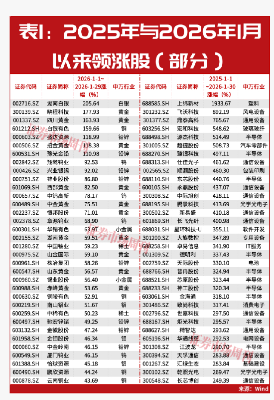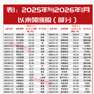 但拉长周期来看,走出“稳稳的幸福”的牛股更多是科技股。2025年以来(截至2026年1月30日),上纬新材、飞沃科技、鼎泰高科、宏和科技、源杰科技、超捷股份、臻镭科技等均走出翻多倍行情(见表1)。
