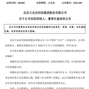 2月3日,大北农创始人、董事长邵根伙不幸在京病逝,享年60岁。